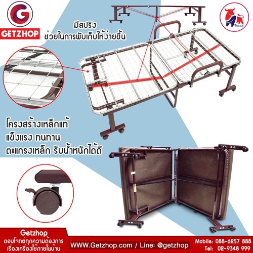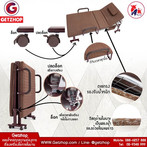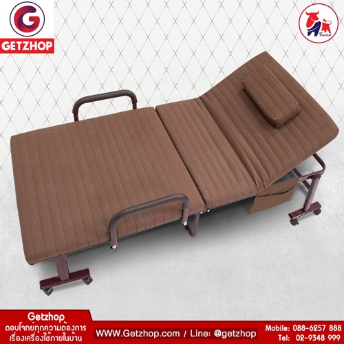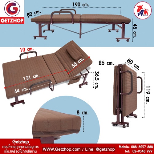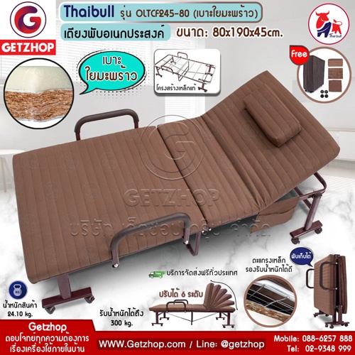 Getzhop เตียงนอนแบบพับ เตียงพร้อมเบาะรองนอน เตียงผู้ป่วย เตียงเหล็ก Thaibull รุ่น  OLTCF245-80 พิเศษ! เบาะใยมะพร้าว ขนาด 80x190x45cm. (Brown)