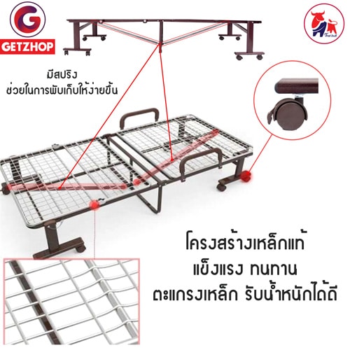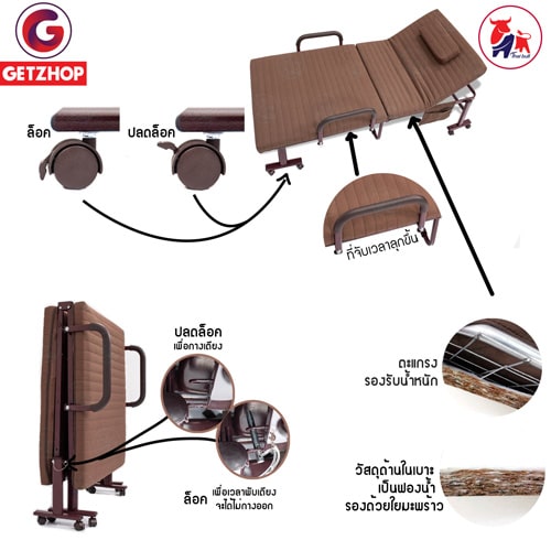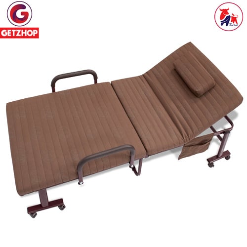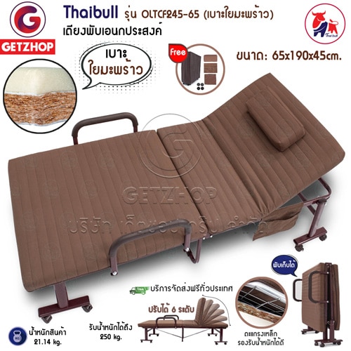 Getzhop เตียงนอนแบบพับ เตียงพร้อมเบาะรองนอน เตียงผู้ป่วย เตียงเหล็ก Thaibull รุ่น OLTCF245-65 พิเศษ! เบาะใยมะพร้าว ขนาด 65x190x45cm. (Brown)