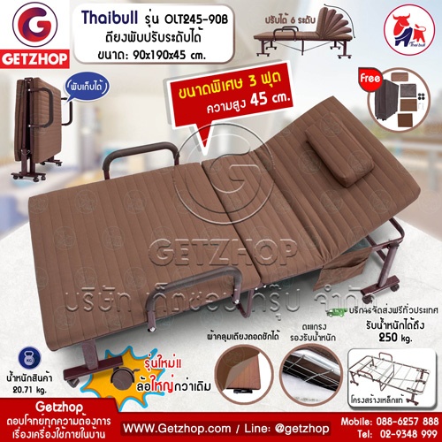 Thaibull เตียงนอนแบบพับ เตียงพร้อมเบาะรองนอน เตียงเหล็ก Straight ล้อใหญ่พิเศษ! รุ่น OLT245-90B (ขนาด 3 ฟุต 90x190x45cm.)