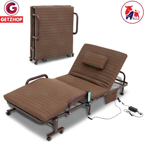 Getzhop เตียงนอนปรับระดับได้ พร้อมรีโมท เตียงนอนพับได้ เตียงพร้อมเบาะรองนอน  Thaibull รุ่น OLT435-85  ขนาด 85 x192x34cm.(ฺBrown)