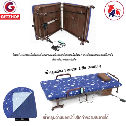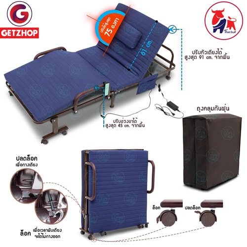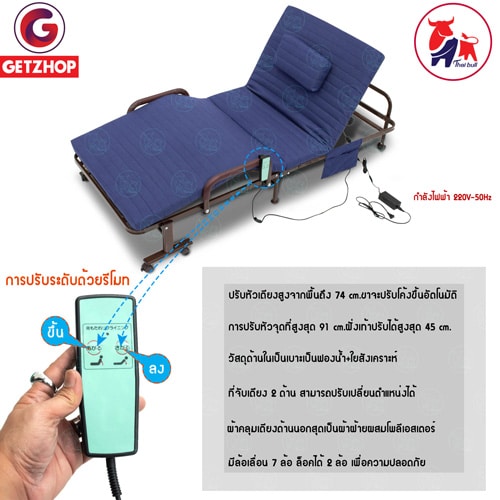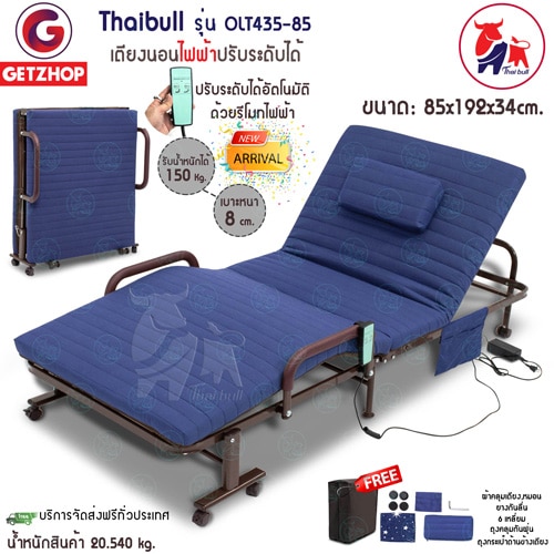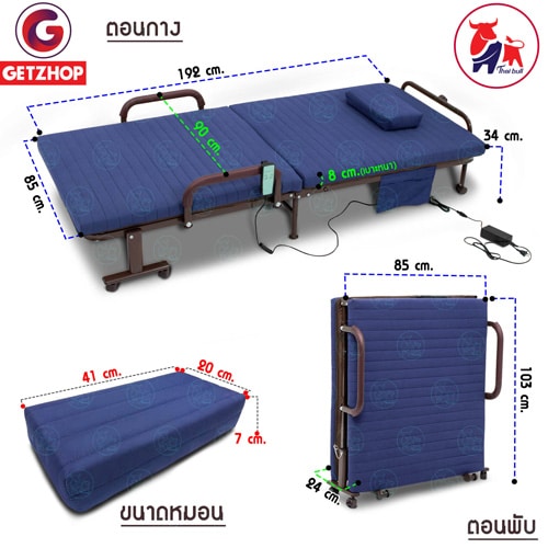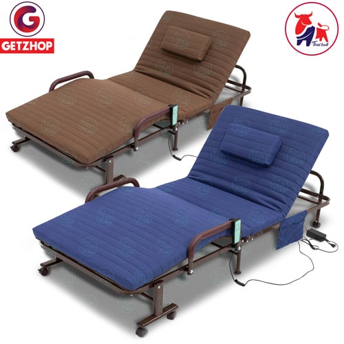 Getzhop เตียงนอนไฟฟ้า เตียงนอนพับได้ เตียงพร้อมเบาะรองนอน เตียงผู้ป่วย Thaibull รุ่น OLT435-85 ขนาด 85 x192x34cm.(ฺBlue)