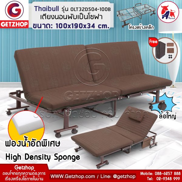 Getzhop เตียงพับได้ เตียงเสริม เตียงพับอเนกประสงค์ โซฟานั่ง 2IN1 Sofa bed รุ่น OLT32D504-100B ขนาด100x190x34cm.