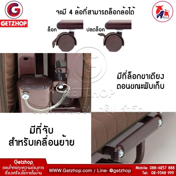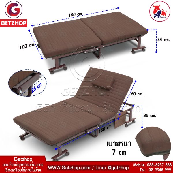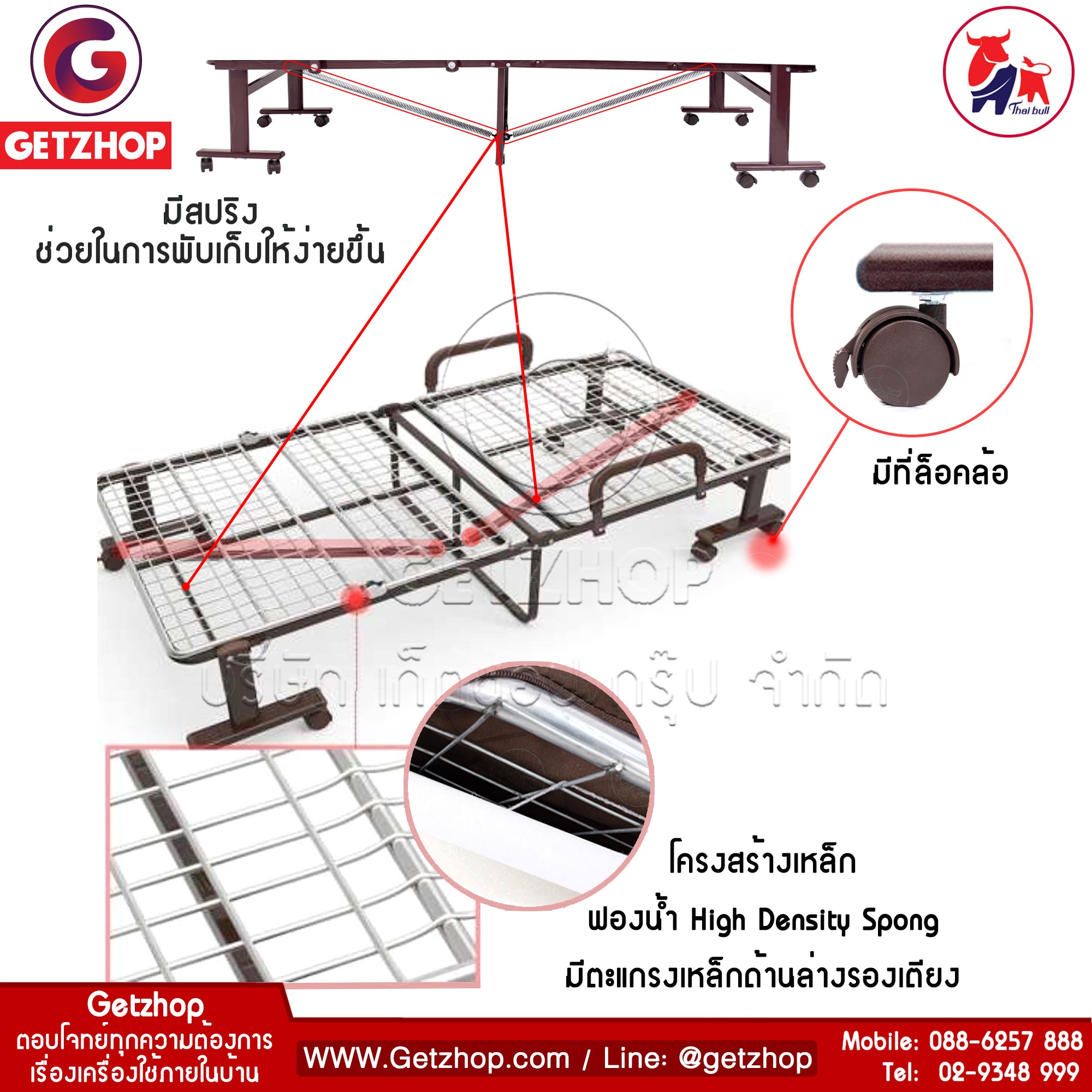 🥘โครงสร้างเป็นเหล็ก วัสดุด้านในเป็นฟองน้ำใยสังเคราะห์ มีตะแกรงเหล็กด้านล่างรองเตียง เพื่อรับน้ำหนักได้แข็งแรง