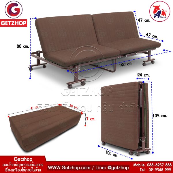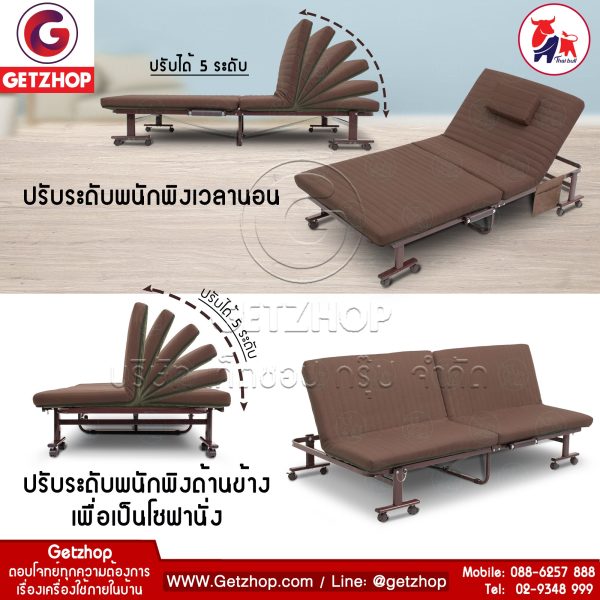 Getzhop เตียงพับได้ เตียงเสริม โซฟานั่ง 2IN1 Sofa bed รุ่น OLT32D504-100B ขนาด100x190x34cm.