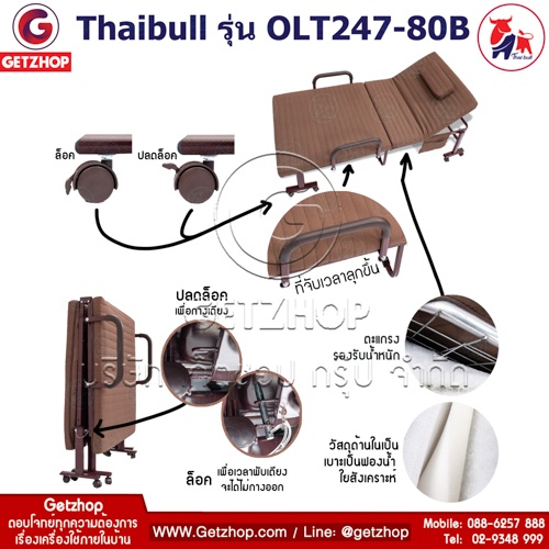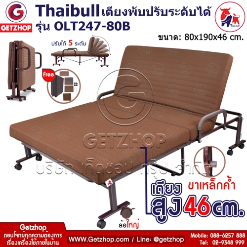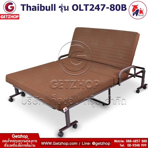 Thaibull รุ่น OLT247-80B เตียงพับ เตียงปรับระดับได้ เตียงผู้ป่วย เตียงเสริม เตียงนอนผู้ป่วย เตียงเหล็ก Fold bed Extra bed พิเศษ! (เพิ่มฐานเหล็กขาค้ำ) สีน้ำตาล