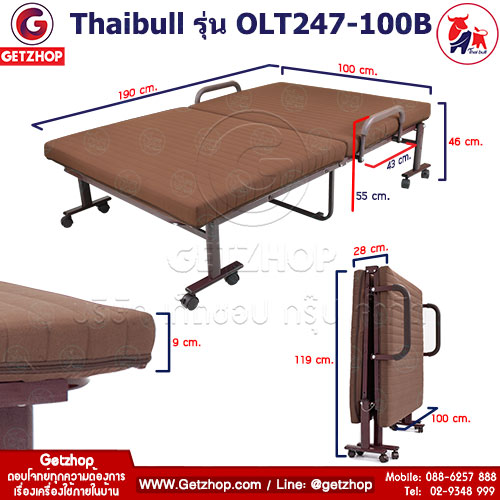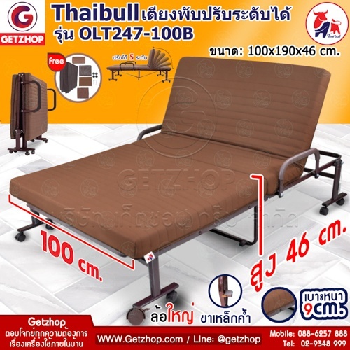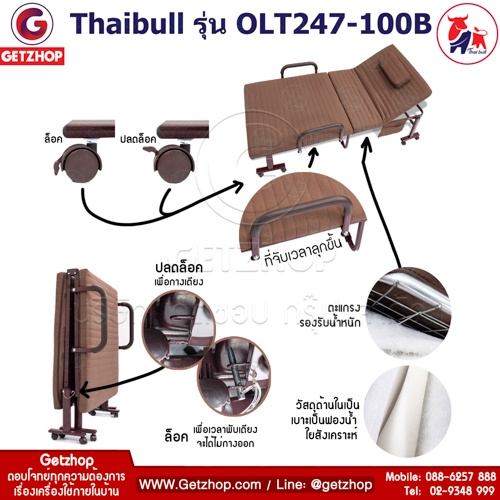 Thaibull รุ่น OLT247-100B เตียงพับ เตียงปรับระดับได้ เตียงผู้ป่วย เตียงเสริม เตียงนอนผู้ป่วย เตียงเหล็ก Fold bed Extra bed พิเศษ! (เพิ่มฐานเหล็กขาค้ำ) สีน้ำตาล