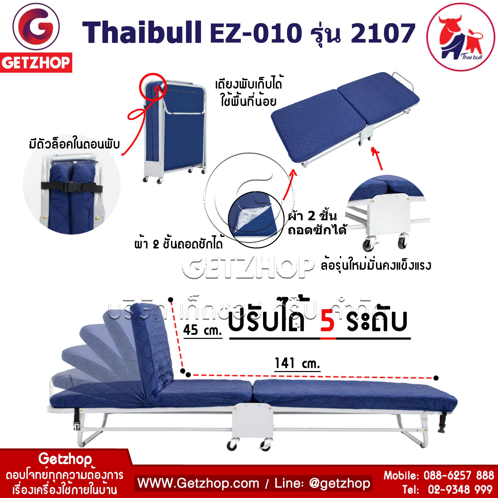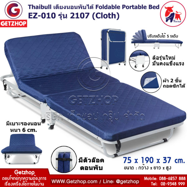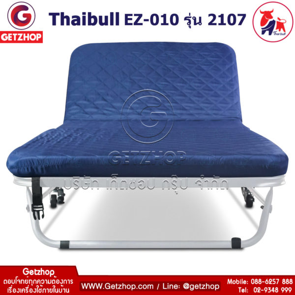 Thaibull รุ่น 2107 EZ-010เตียงเสริมพับได้ พร้อมเบาะรองนอน เตียงเหล็ก มีล้อ (190x75x37 cm.) – สีน้ำเงิน