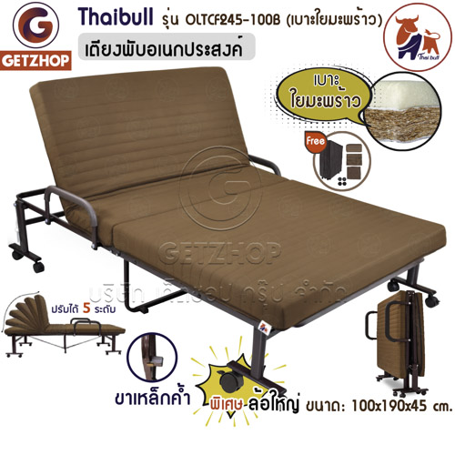 Thaibull เตียงพับได้ เตียงอเนกประสงค์ เตียงผู้สูงอายุ เตียงเบาะ Topper ใยมะพร้าว รุ่น OLTCF245-100B ขนาด 100x190x45 ซม. พิเศษ! เหล็กขาค้ำ
