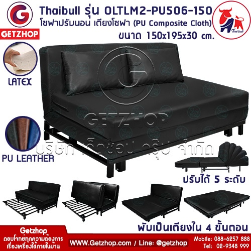 Thaibull รุ่น OLTLM2-PU506-150 เตียงโซฟา โซฟาเบด เฟอร์นิเจอร์หนัง 5 ฟุต ขนาด 150x195x30 cm. (PU Composite Cloth) สีดำ