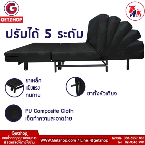 Getzhop เตียงโซฟา โซฟาเบด โซฟาปรับนอน เฟอร์นิเจอร์หนัง 5 ฟุต รุ่น OLTLM2-PU506-150 ขนาด 150x195x30 cm. (PU Composite Cloth)