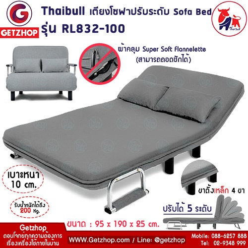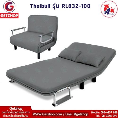 Thaibull รุ่น RL832-100 โซฟาปรับนอนได้ โซฟาเบดโซฟาอเนกประสงค์ สีเทา แถมฟรี! หมอน 2 ใบ