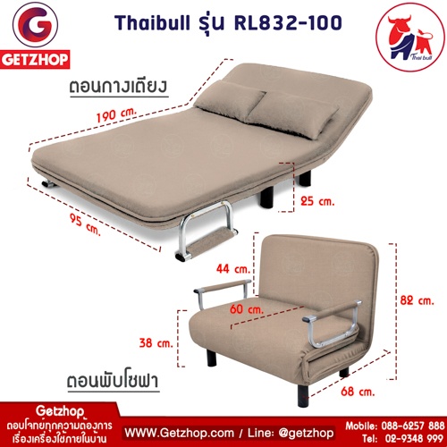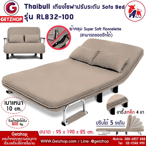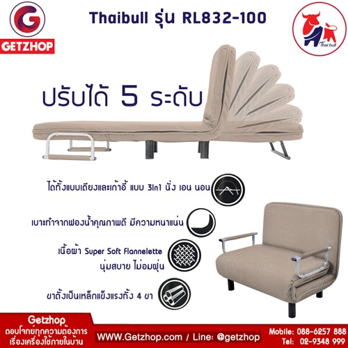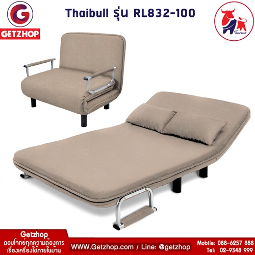 Thaibull รุ่น RL832-100 โซฟาปรับนอนได้ โซฟาเบดโซฟาอเนกประสงค์ สีเบจ แถมฟรี! หมอน 2 ใบ