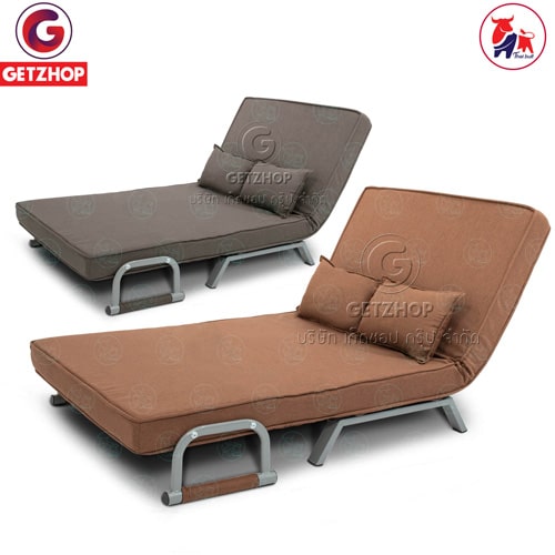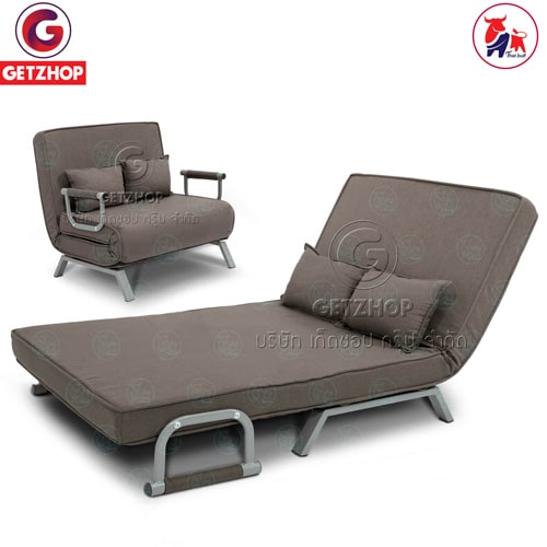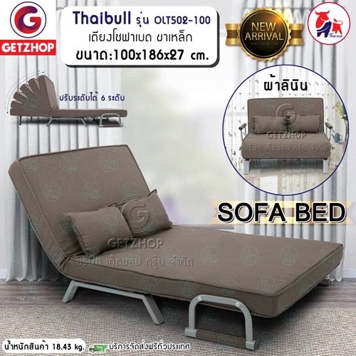 Getzhop โซฟาปรับระดับนอน 180 องศา โซฟาเบด โซฟานอนได้ เตียงโซฟา โซฟาที่นอน 2 ที่นั่ง SOFA BED Thaibull รุ่น OLT502-100 ขนาด 186*100*27 cm. (สีเทา) แถมฟรี! หมอน 2 ใบ