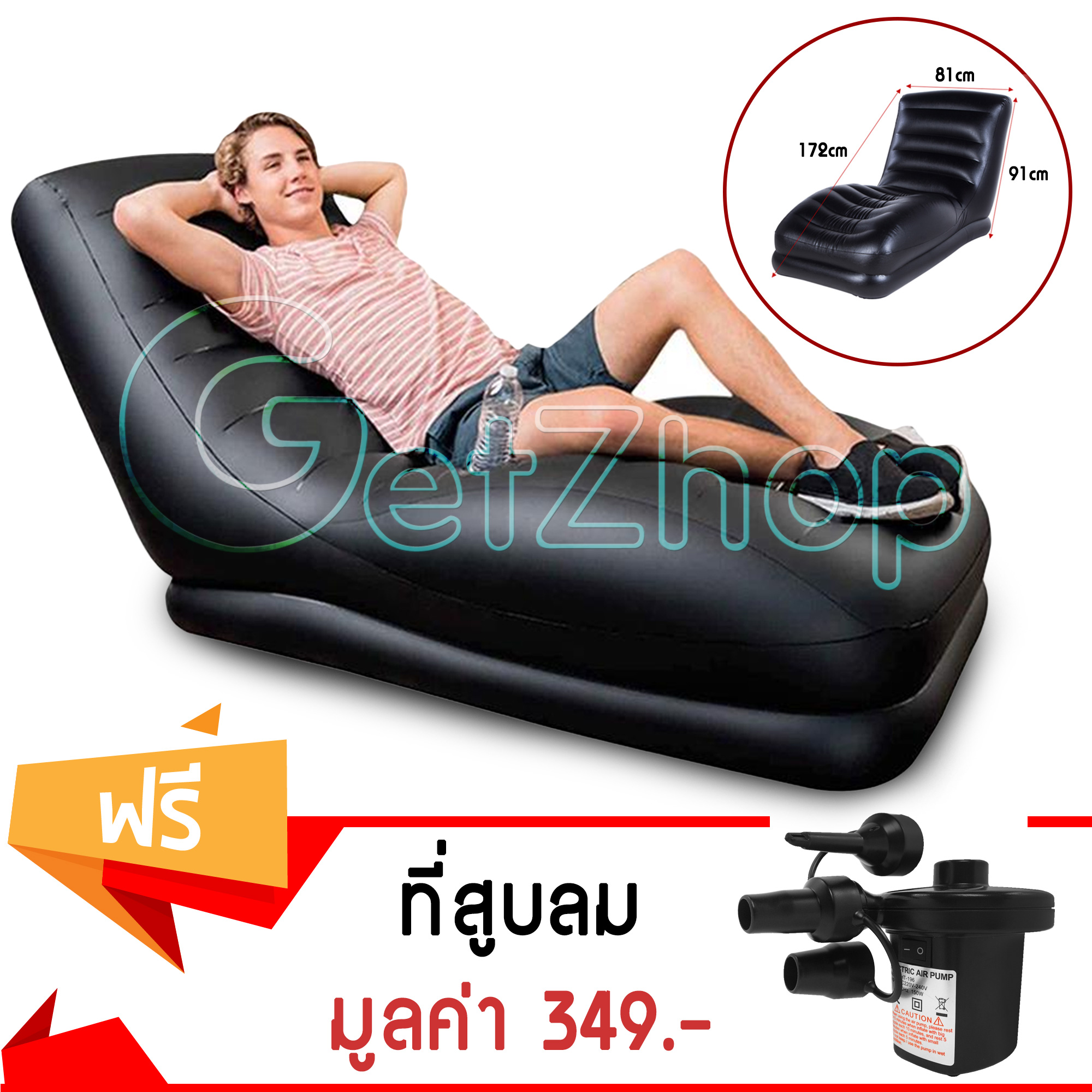 GetZhop โซฟาเป่าลม เก้าอี้สูบลม โซฟาสูบลม เมก้าเล้าน์จ ขนาด 81x173x91 ซม. รุ่น 68585 (สีดำ)