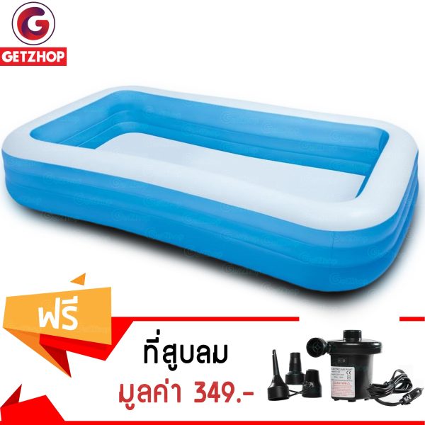 Getzhop สระว่ายน้ำ สระน้ำเป่าลม สระน้ำ 305 x 183 x 56 cm. รุ่น 58454 (สีฟ้า/ขาว)