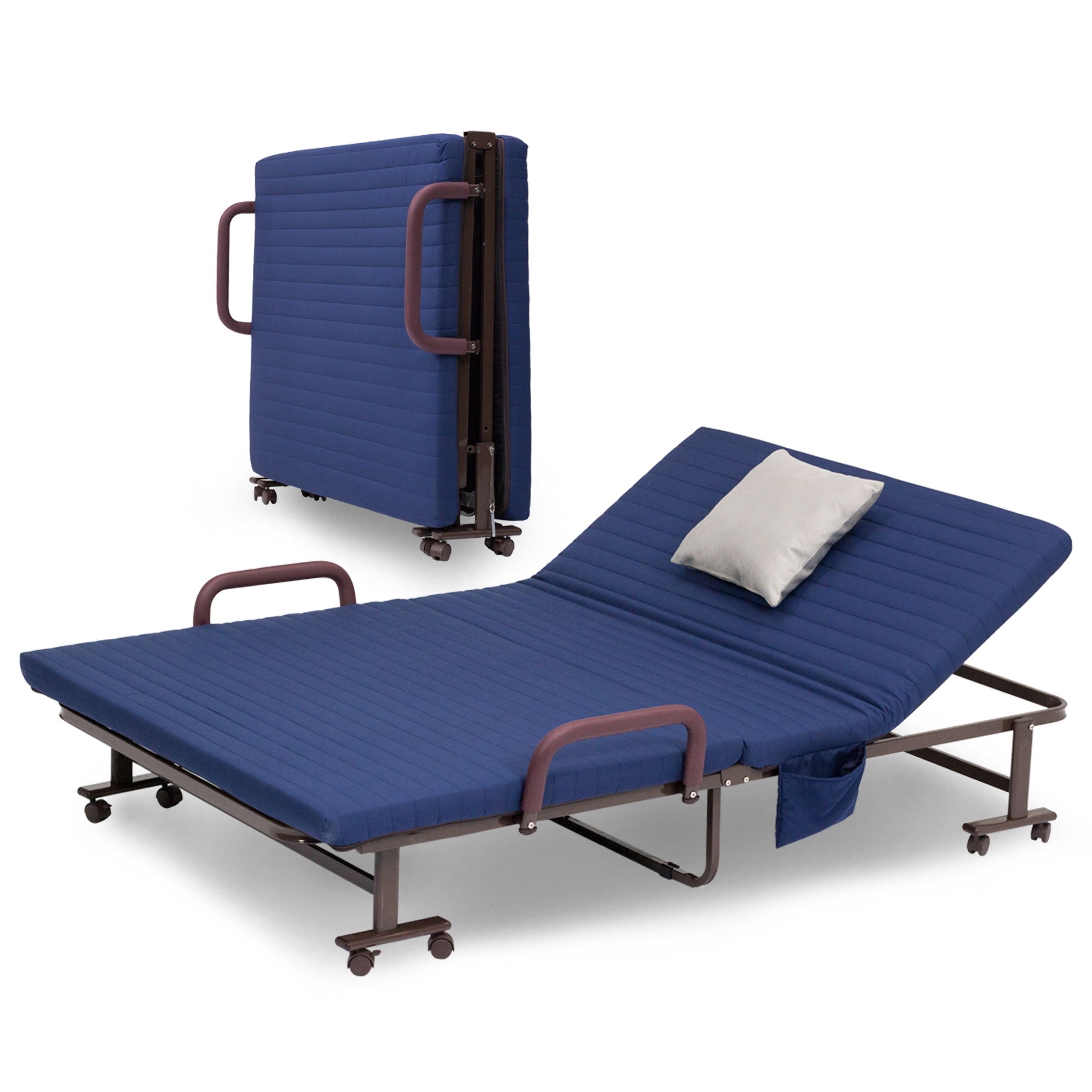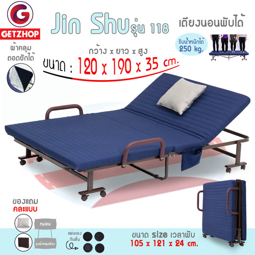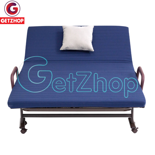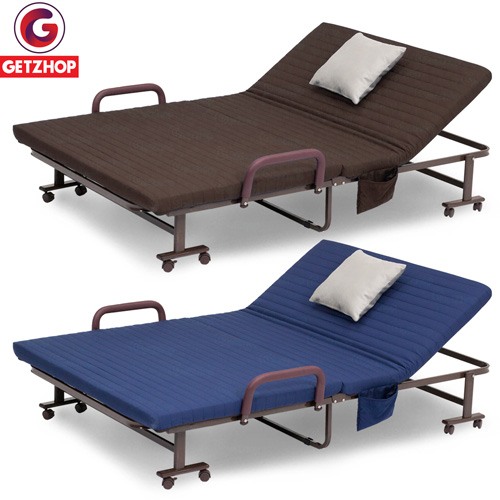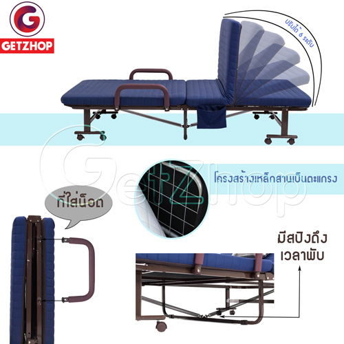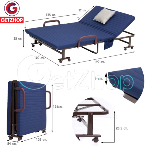 Getzhop เตียงนอนพับได้ เตียงเหล็ก เตียงเสริมพับเก็บได้ 2 ตอน รุ่น JS001-120 ขนาด 120x190x35cm. Premium reinforce folding bed (สีน้ำเงิน) แถมฟรี! ผ้าคลุมเตียง หมอน (คละสี)