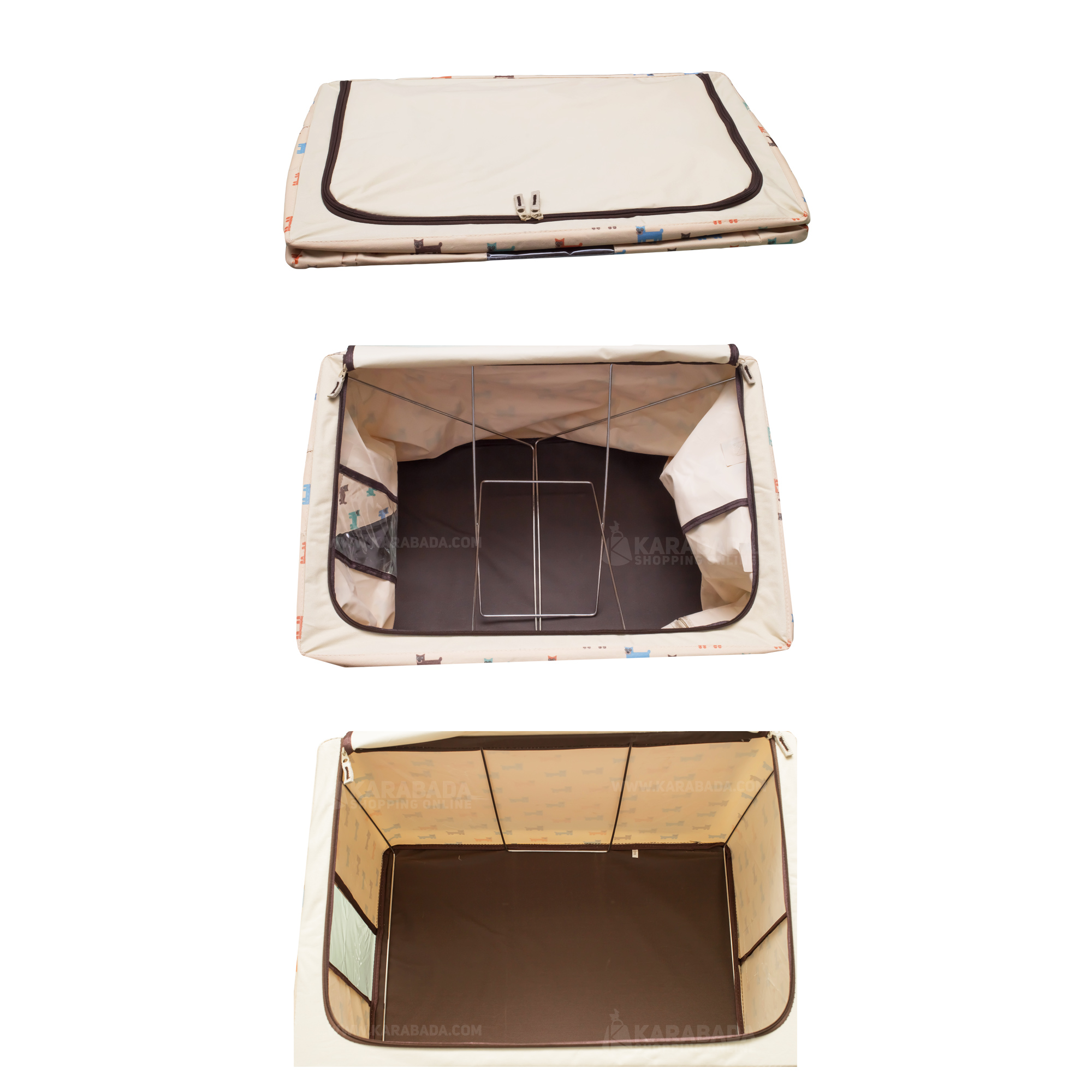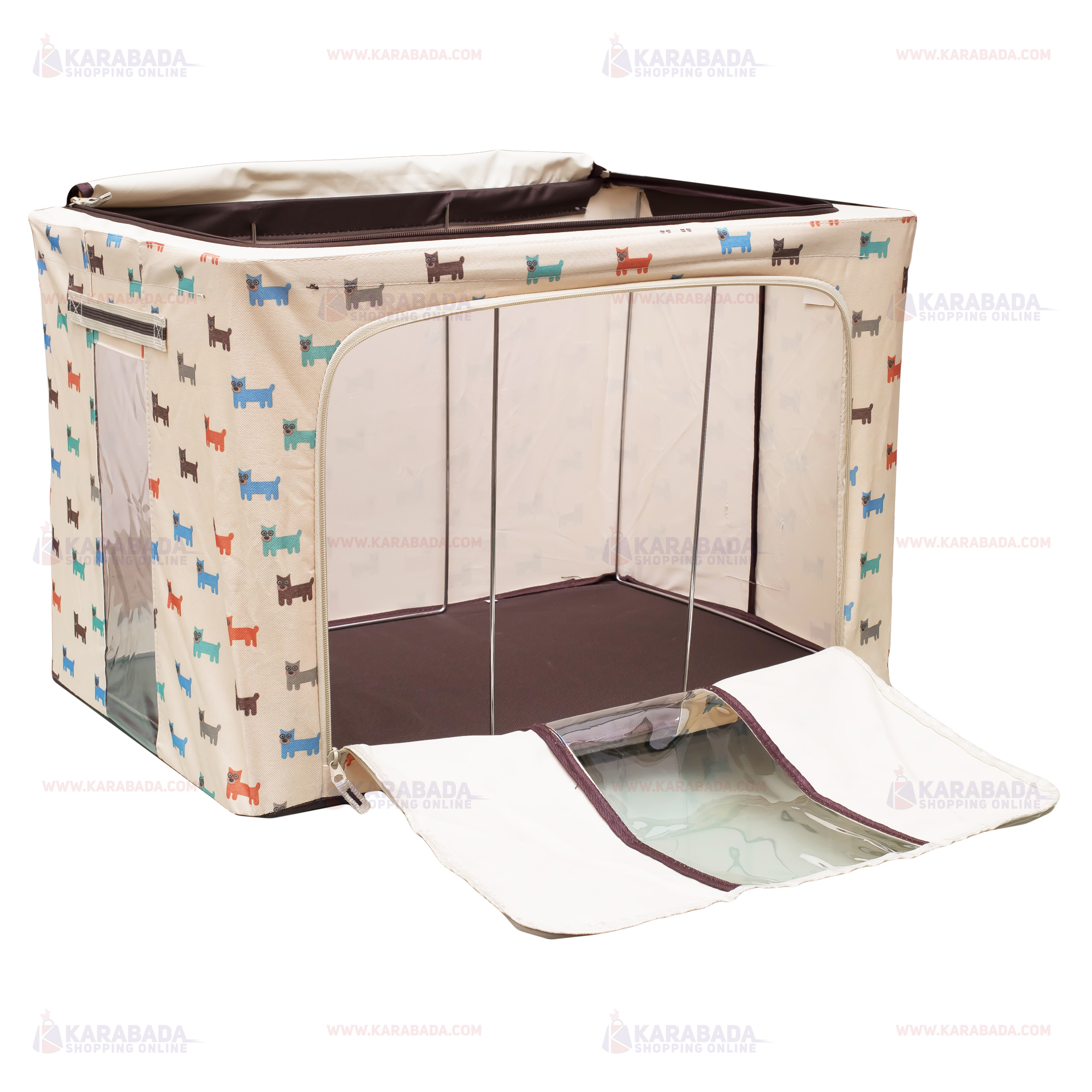 Karabada กล่องผ้า กล่องเอนกประสงค์ กล่องเก็บเสื้อผ้าลายสุนัข ขนาด 100 ลิตร (สีน้ำตาลอ่อน)