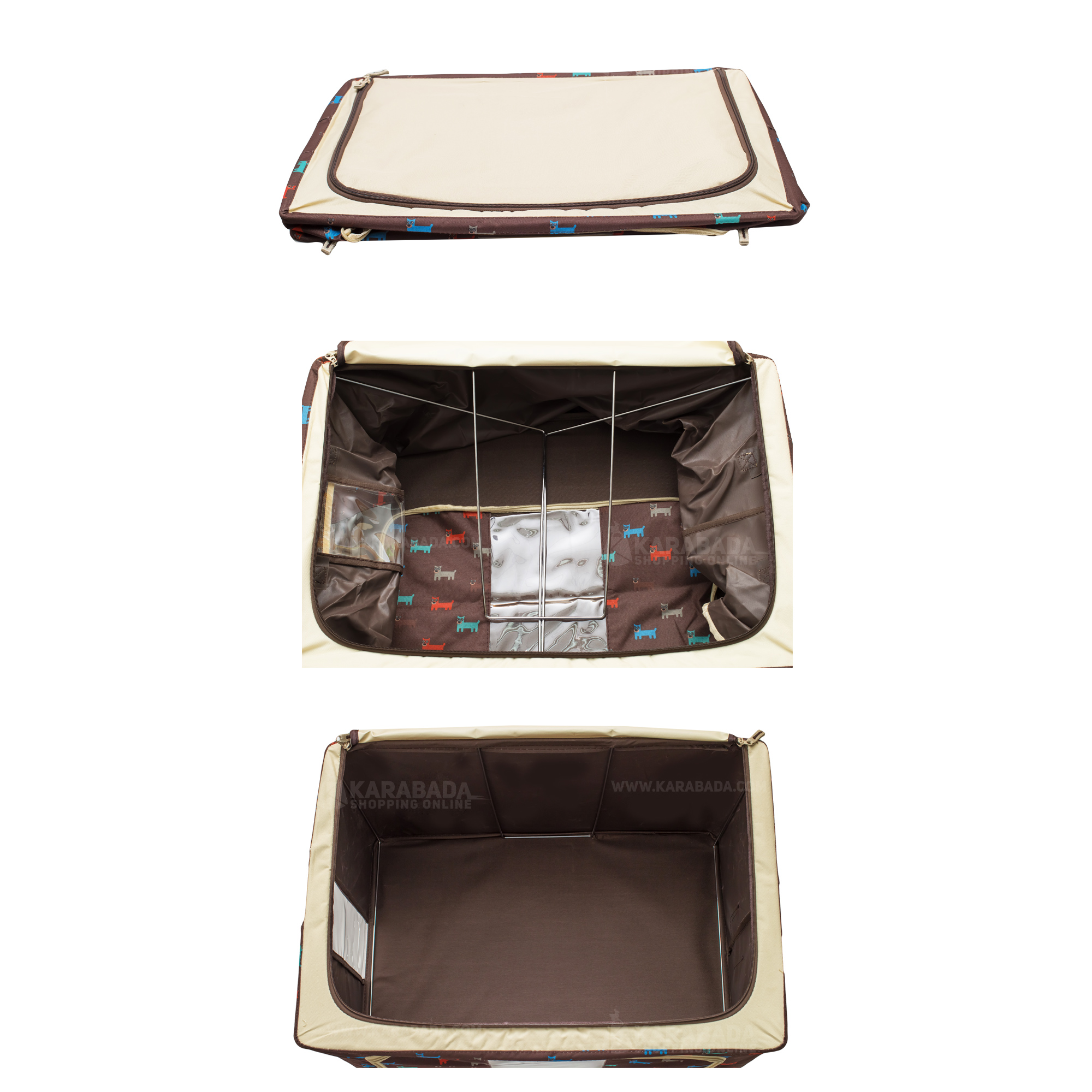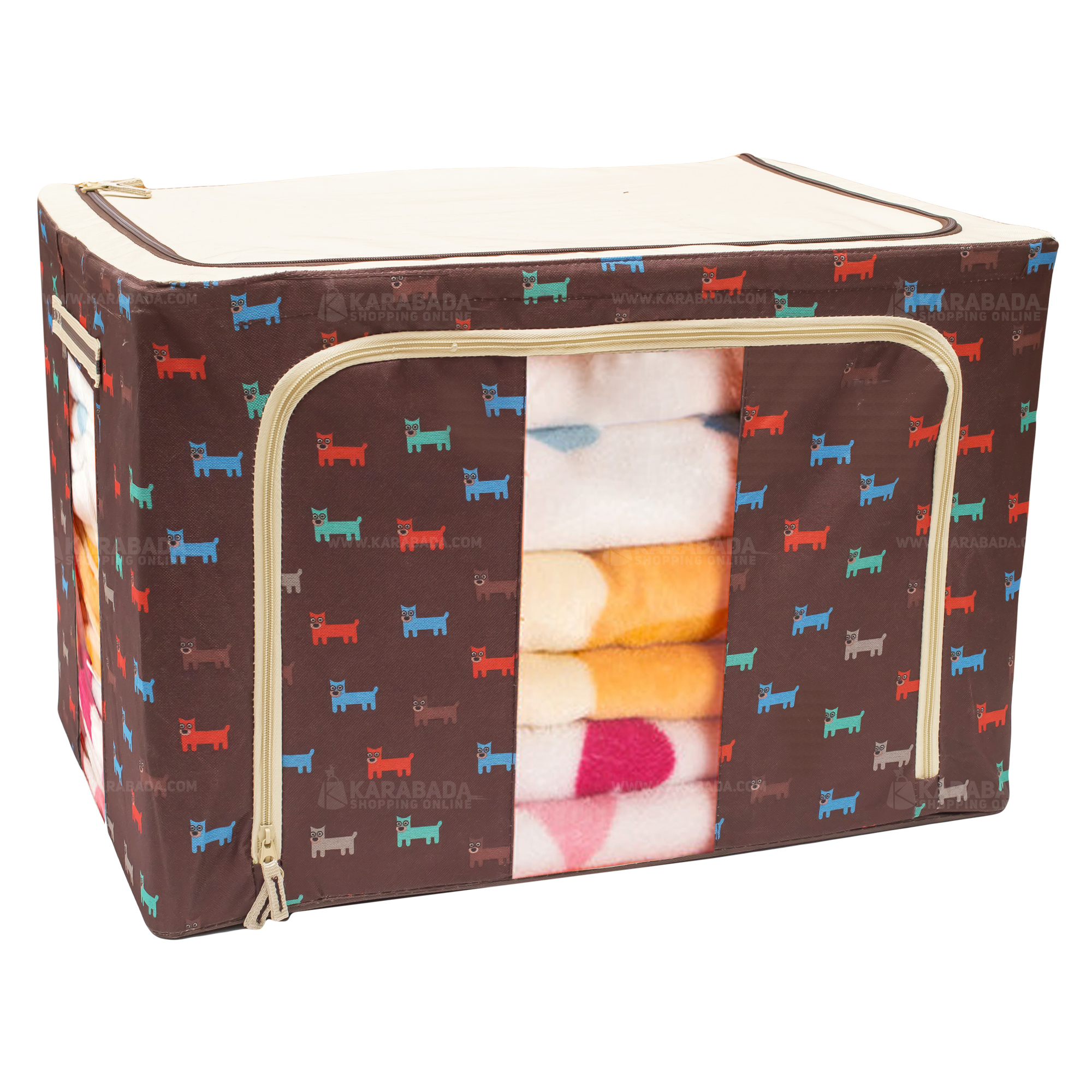 Karabada กล่องผ้า กล่องเอนกประสงค์ Multipurpose boxes ลายสุนัข ขนาด 100 ลิตร (สีน้ำตาลเข้ม)