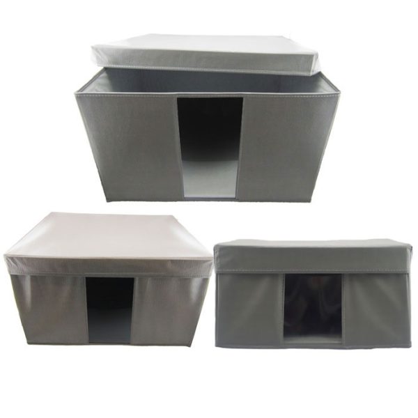 กล่องหนังใส่ผ้า กล่องใส่เสื้อผ้า กล่องเอนกประสงค์ แบบแข็ง Set 3 ชิ้น 3 ขนาด – สีเทา