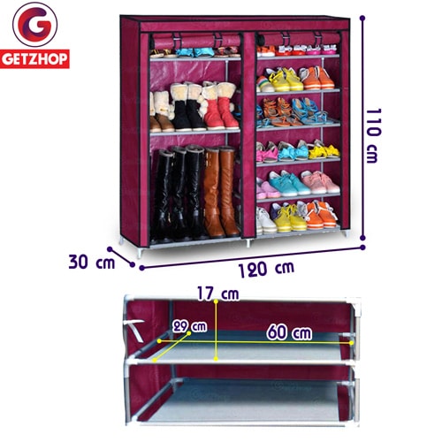 Getzhop ตู้วางรองเท้า ชั้นวางรองเท้าพร้อมผ้าคลุม Bangfeier Shoe Cabinet – สีชมพูเข้ม
