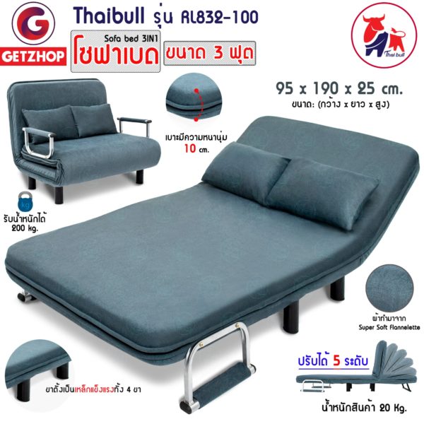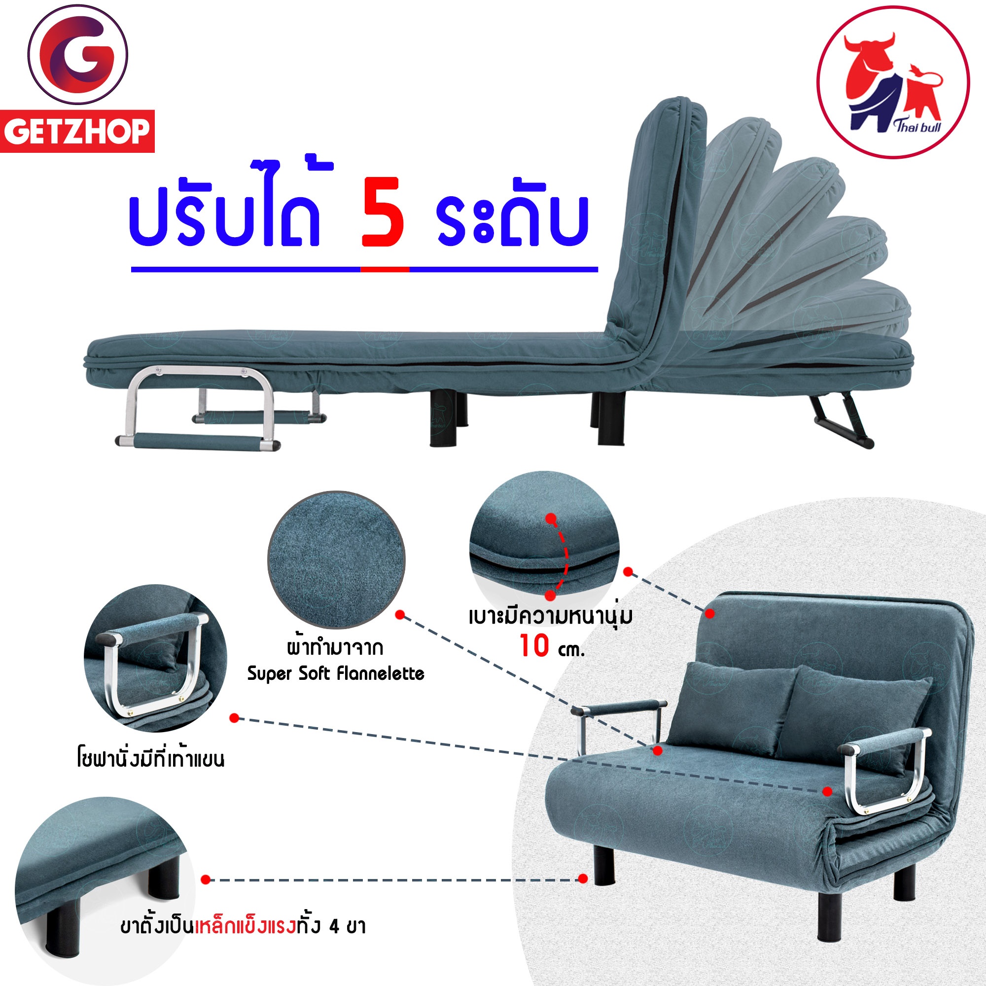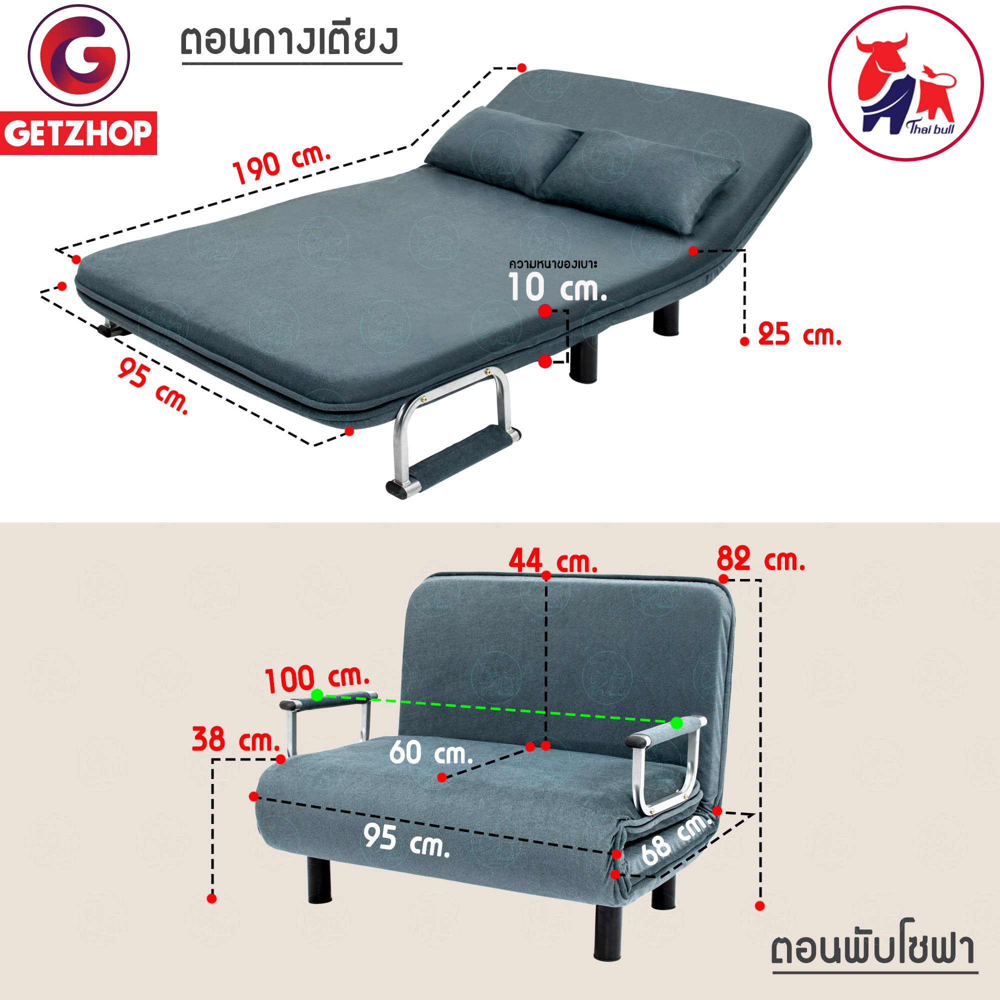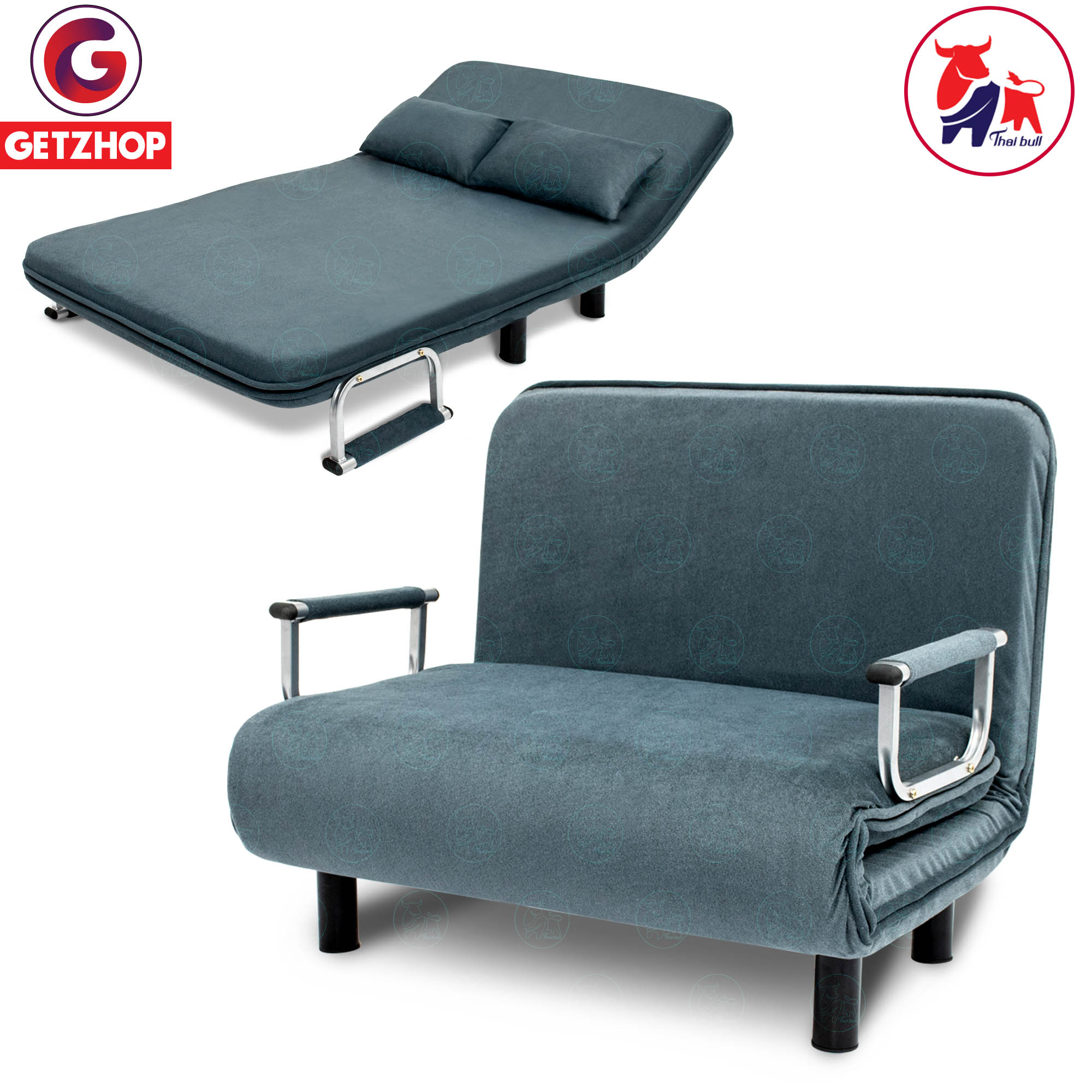 Getzhop โซฟาเเบด เตียงนอน เตียงโซฟา ขนาด 3ฟุต โซฟานั่งและเตียงนอน Sofa Bed 3IN1 Thaibull รุ่น RL832-100 (95x 190 x25 cm.) สีเทาเข้ม