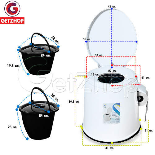Portable Toilet (Length x Width x Height): 41x51x39.5 cm from floor to seat