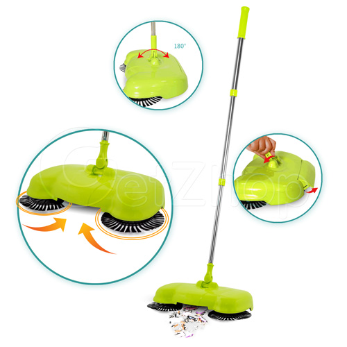 Sweeping Machine รุ่น JF-017 ไม้กวาดพื้น ไม้กวาดดูดฝุ่นอัจฉริยะ หมุนได้ 360 องศา (สีเขียว)