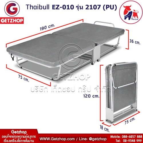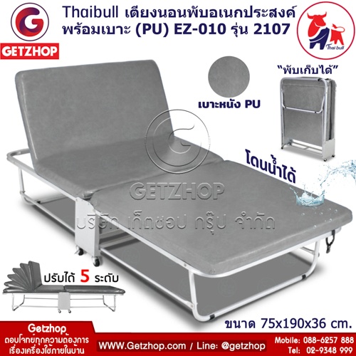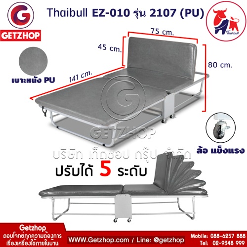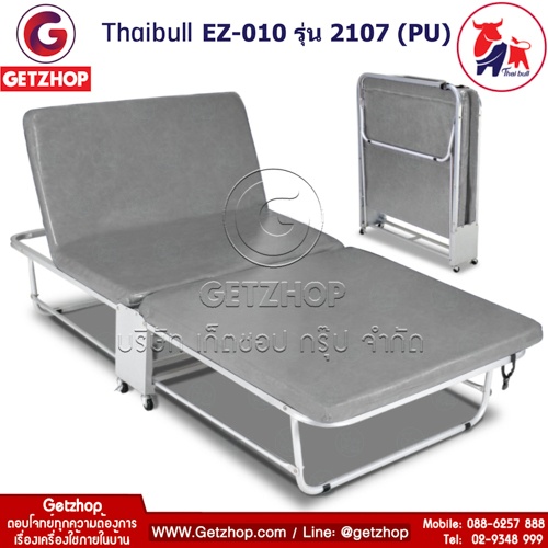 Thaibull รุ่น 2107 (PU) EZ-010 เตียงเสริมพับได้ เตียงนอน พร้อมเบาะรองนอน เตียงพับปรับระดับได้ เตียงหุ้มเบาะหนัง Foldable Portable Bed