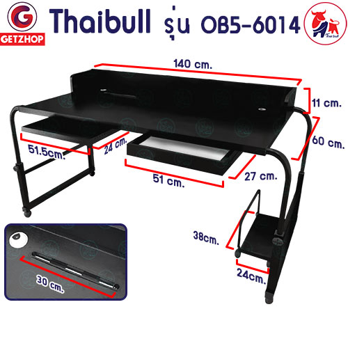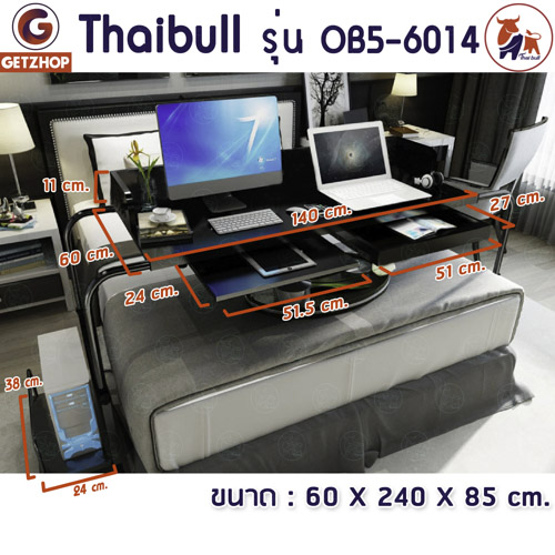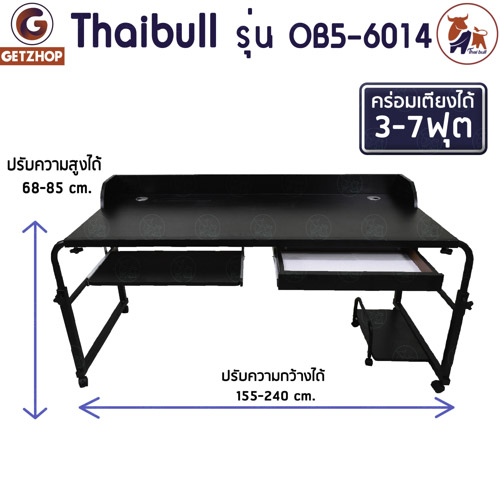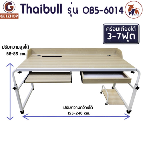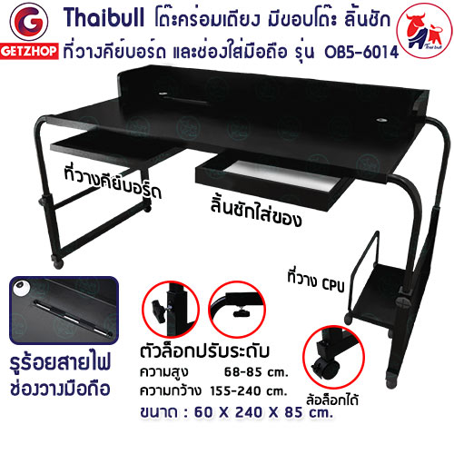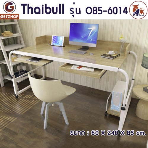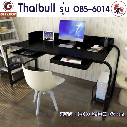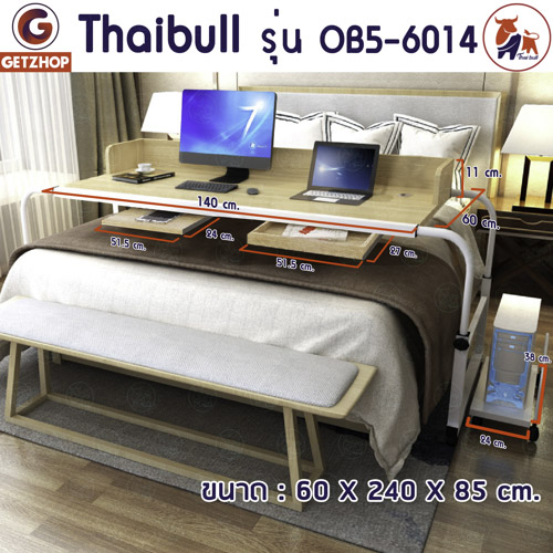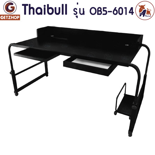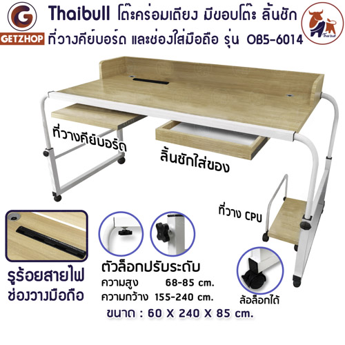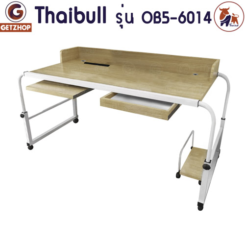 Thaibull รุ่น OB5-6014 โต๊ะทำงาน โต๊ะคร่อมเตียง โต๊ะอเนกประสงค์ ช่องวาง CPU-ขอบโต๊ะ- ลิ้นชัก-ที่วางคีย์บอร์ด-ช่องใส่มือถือ ขนาด 155 – 240 cm.