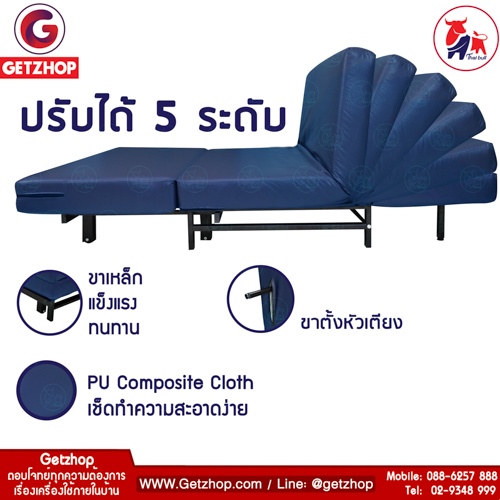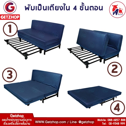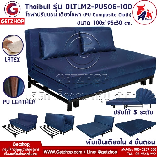 Thaibull รุ่น OLTLM2-PU506-100 เตียงโซฟา โซฟาเบด โซฟาปรับนอน เฟอร์นิเจอร์หนัง (PU Composite Cloth) สีน้ำเงิน
