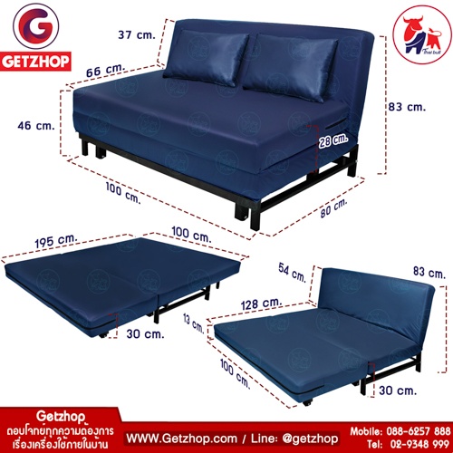 ขนาดปรับเป็นเตียง : 100 x 195 x 30 ซม.