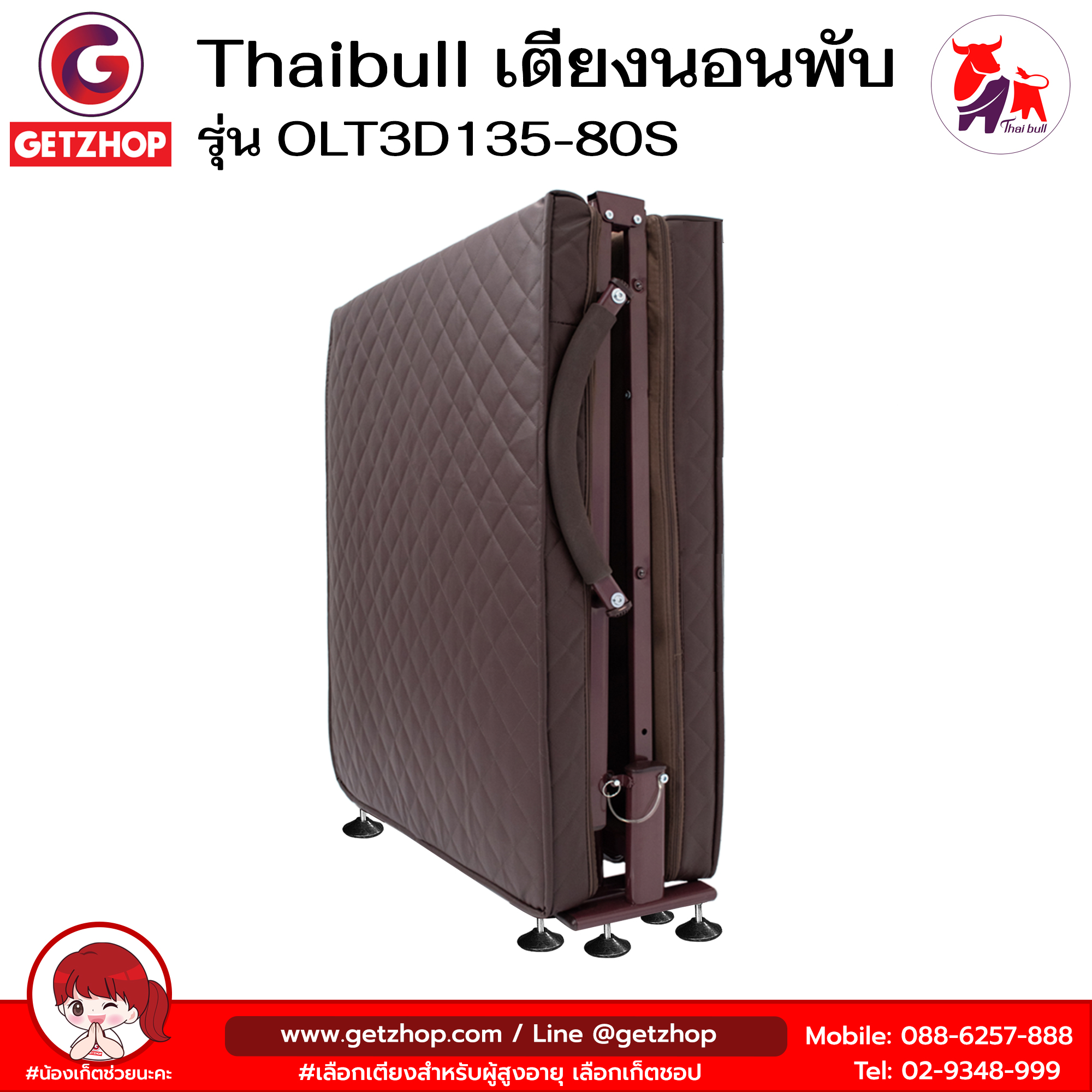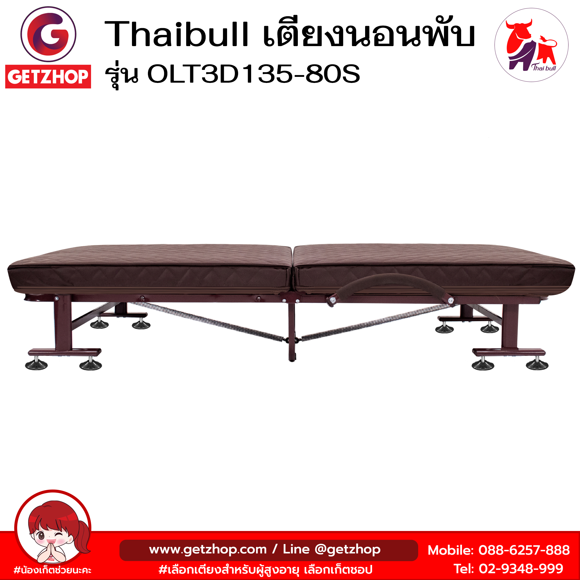 Thaibull เตียงนอนพับได้ เตียงพร้อมเบาะรองนอน เตียงปรับระดับได้ รุ่น OLT3D135-80S Reinforce folding bed (PU)