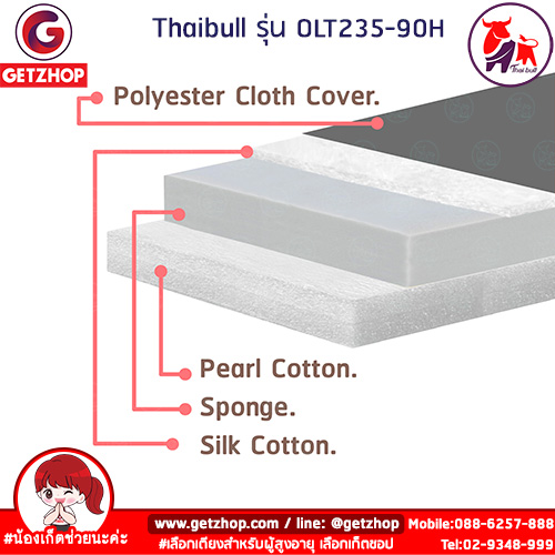 4.เบาะทำจากฟองน้ำอัดแน่นผสมใยสังเคราะห์ เกรดพรีเมี่ยม นอนสบาย รองรับสรีระได้เป็นอย่างดี มีความหนา 5 ซม.