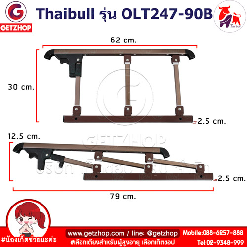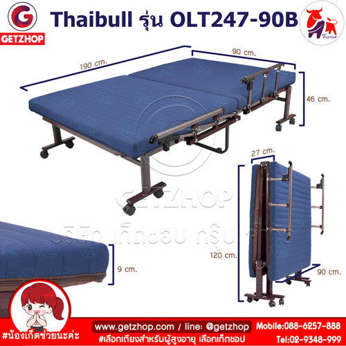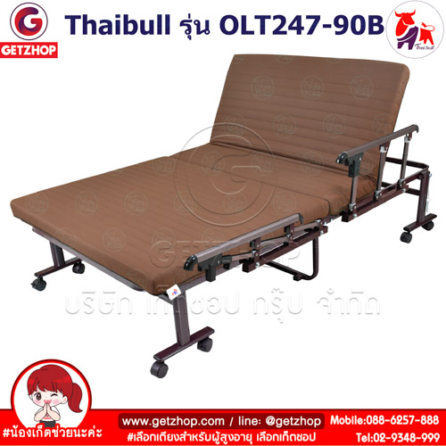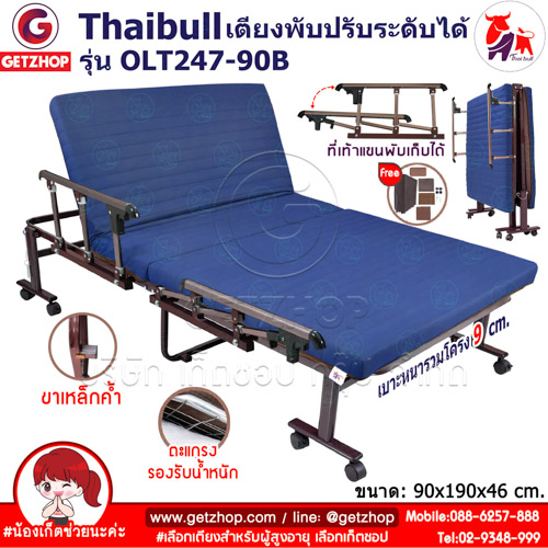 Thaibull เตียงนอน 3ฟุต เตียงปรับระดับได้ เตียงผู้ป่วย เตียงเสริม เตียงนอนผู้ป่วย เตียงเหล็ก Fold bed Extra bed รุ่น OLT247-90B พิเศษ!(แขนพับได้)