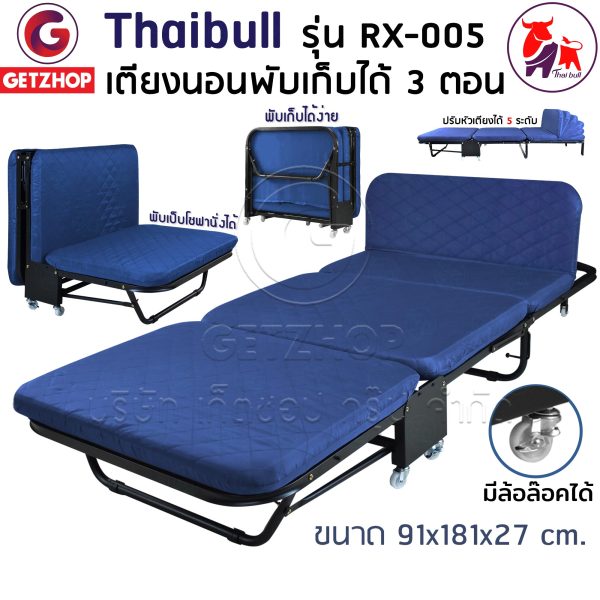 Thaibull เตียงพับ 3 ตอน เตียงโซฟา เตียงพับปรับระดับได้ โซฟา เก้าอี้นั่ง รุ่น RX-005(Blue)