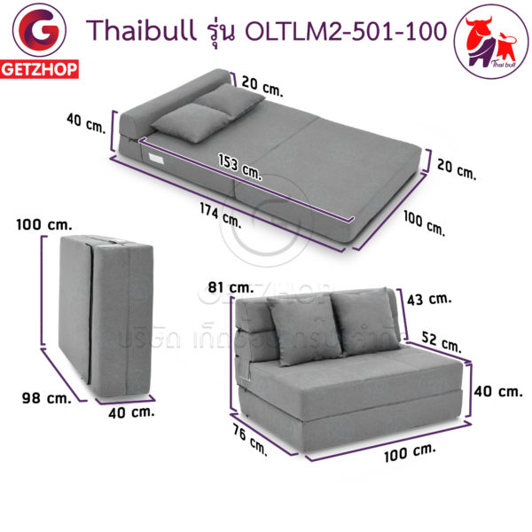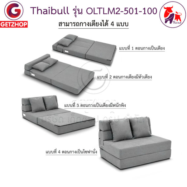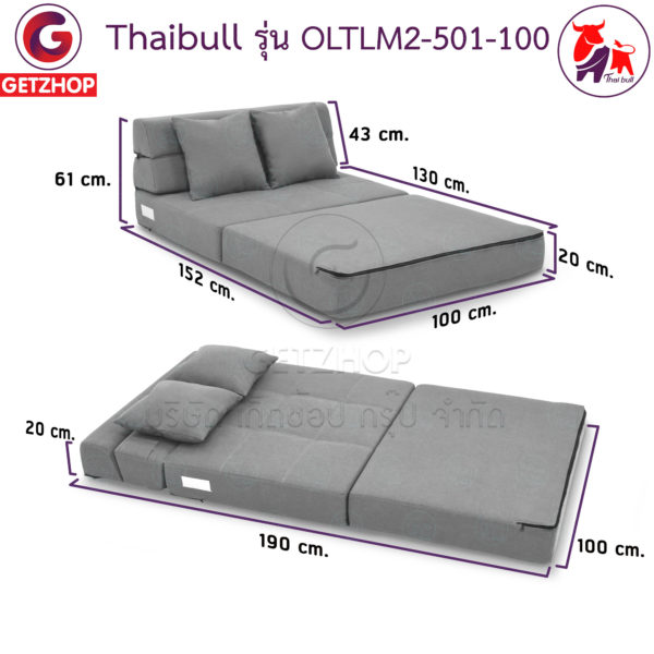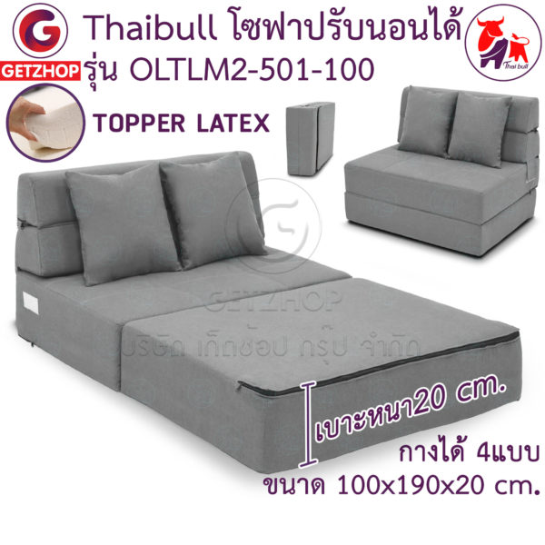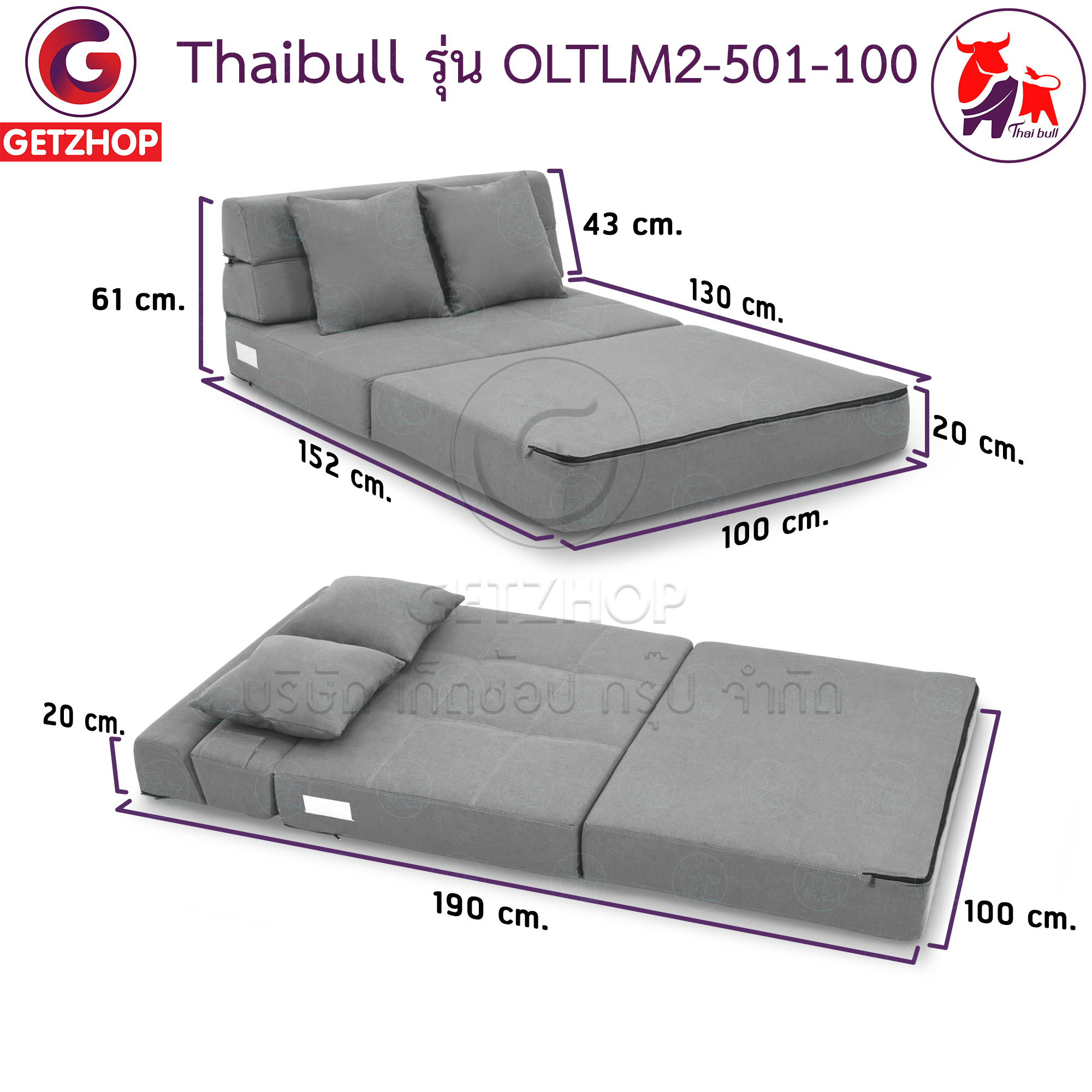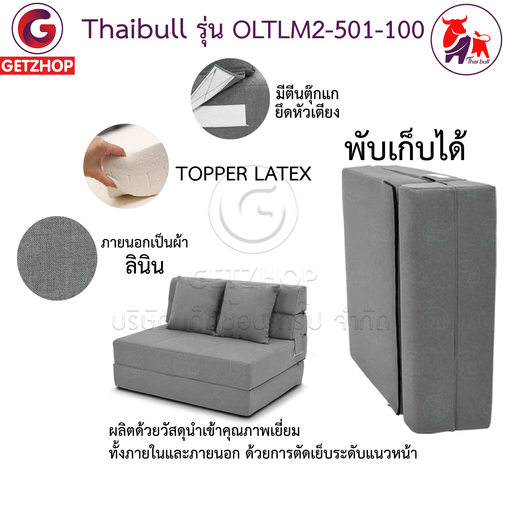 โซฟาเบด Thaibull รุ่น OLTLM2-501-100 เตียงโซฟา โซฟาเบด โซฟาปรับนอน โซฟาญี่ปุ่น Topper Latex 2 ที่นั่ง SOFA BED แถมฟรี! หมอน 2 ใบ
