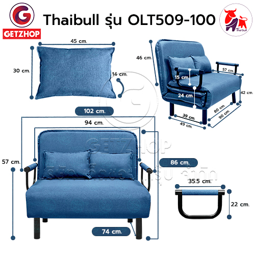 Thaibull sofa bed, sofa bed, foldable sofa bed Can be converted into a bed, Sofa Bed model OLT 509-100 (removable and washable cover)