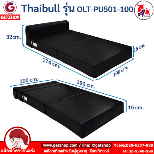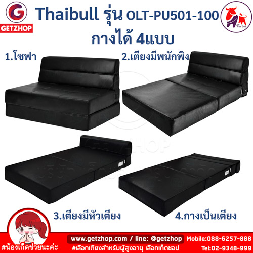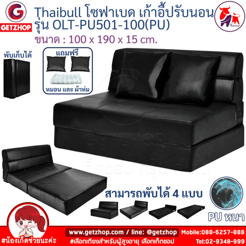Thaibull โซฟา โซฟาเบด โซฟาหนังปรับระดับนอน โซฟาที่นอน เตียง โซฟาญี่ปุ่น Sofabed รุ่น OLT-PU501-100