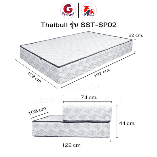 1.ขนาดเบาะ (กาง) : 108x197x22 cm.