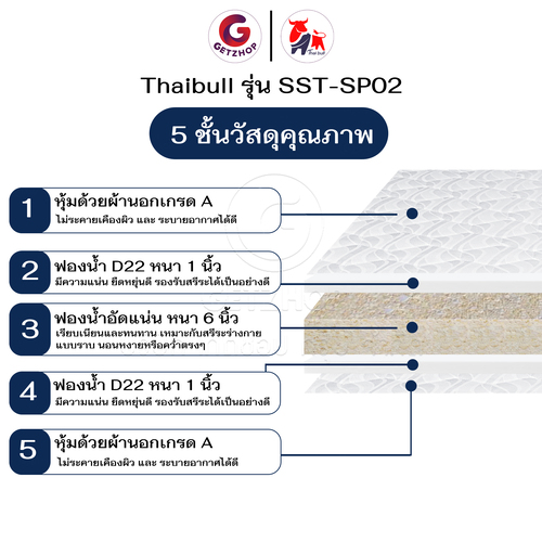 Thaibull mattress, 2-fold topper, foldable cushion, size 3.5 feet, thickness 8.5 inches, model SST-SP02, made in Thailand, is very popular in 3-5 star hotels.
