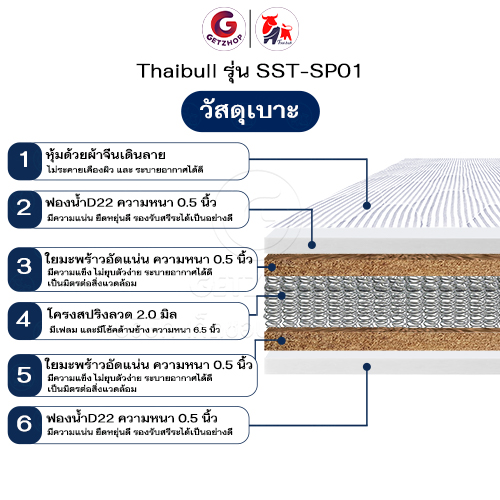 Thaibull Spring mattress, 3.5 feet spring bed, 8.5 inches thick, foldable, model SST-SP01 (white)Mattress structure