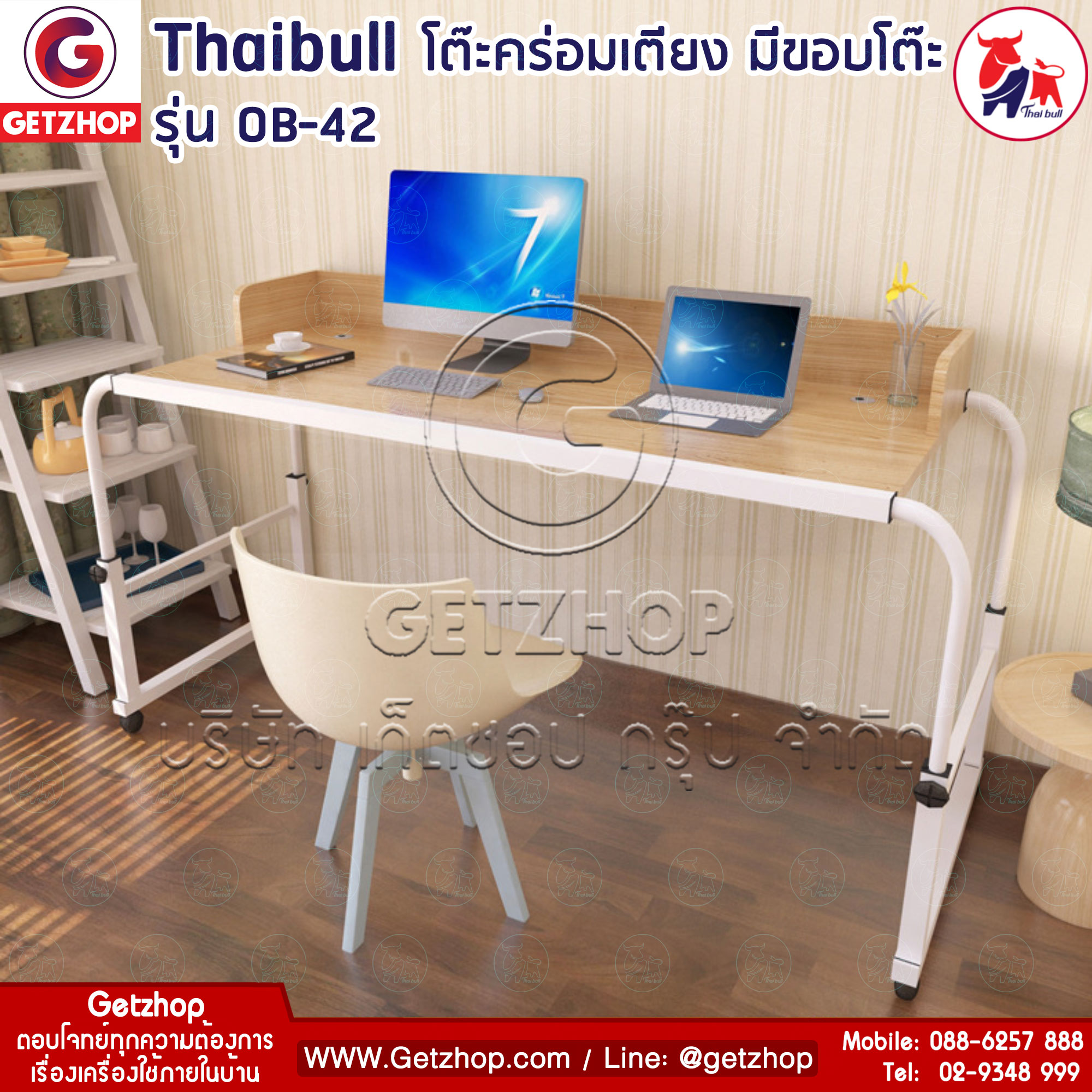 Thaibull โต๊ะทำงาน โต๊ะคร่อมเตียง โต๊ะอเนกประสงค์ โต๊ะอ่านหนังสือ โต๊ะข้างเตียง มีขอบโต๊ะ มีล้อ รุ่น OB-42 ขนาด 135-206 cm.