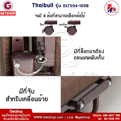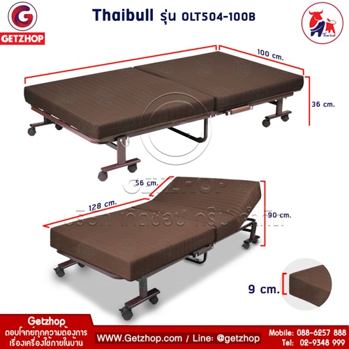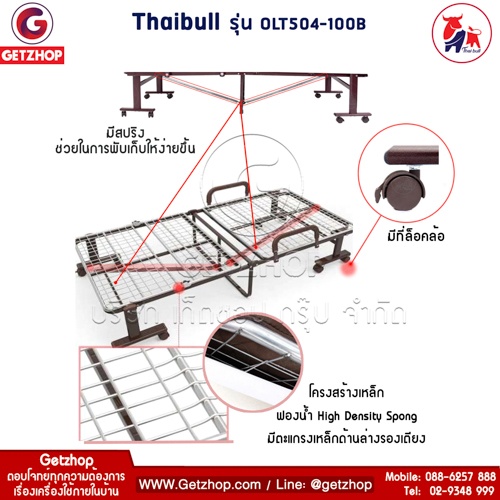 - เตียงนอนพับ Thaibull รุ่น OLT504-100B รุ่นพิเศษ! ด้านล่างขาเหล็ก ปรับโครงสร้างโดยการเพิ่มขาค้ำทั้ง 2 ฝั่ง เพื่อการรับน้ำหนักที่ดีขึ้นกว่าเดิม และโยกน้อยลง รับน้ำหนักได้ถึง 200 Kg.