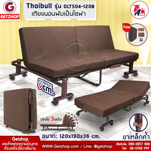 เตียงนอนโซฟา Thaibull รุ่น OLT504-120B เตียงนอนพับ 4 ฟุต เตียงโซฟา เตียงปรับระดับ โซฟานั่ง 3IN1 Large Folding bed สีน้ำตาล