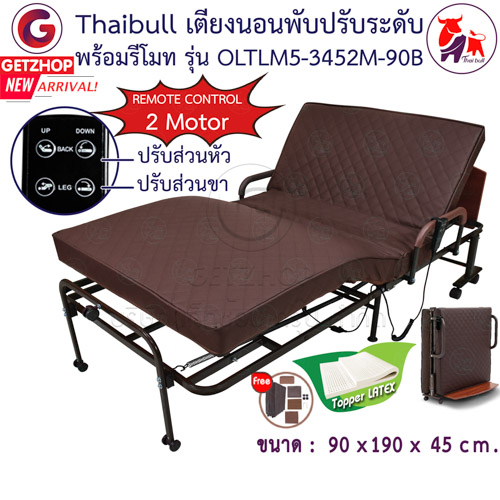 เตียงนอนไฟฟ้า เตียงผู้สูงอายุ เตียงนอนเบาะยางพารา เตียงพับไฟฟ้า ปรับระดับแยก (หัวเตียง-ปลายเตียง) Thaibull รุ่น OLTLM5-3452M-90B