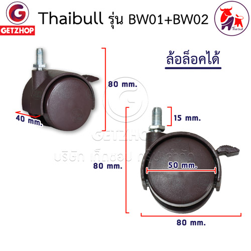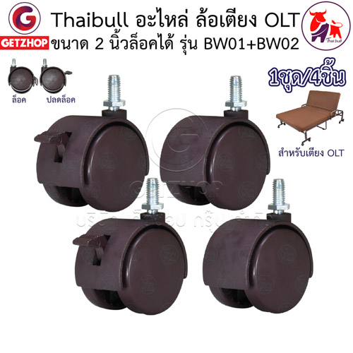 Thaibull อะไหล่ล้อ ล้อเตียงพับ ล้อเก้าอี้สำนักงาน ล้อเก้าอี้ ล้อเฟอร์นิเจอร์ รุ่น BW01,BW02 1 ชุด 4 ชิ้น