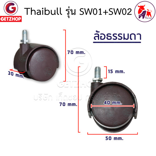 Thaibull อะไหล่ล้อ ล้อเตียงพับ ล้อเก้าอี้สำนักงาน ล้อเก้าอี้ ล้อเฟอร์นิเจอร์ รุ่น SW01,SW02 1 ชุด 4 ชิ้น