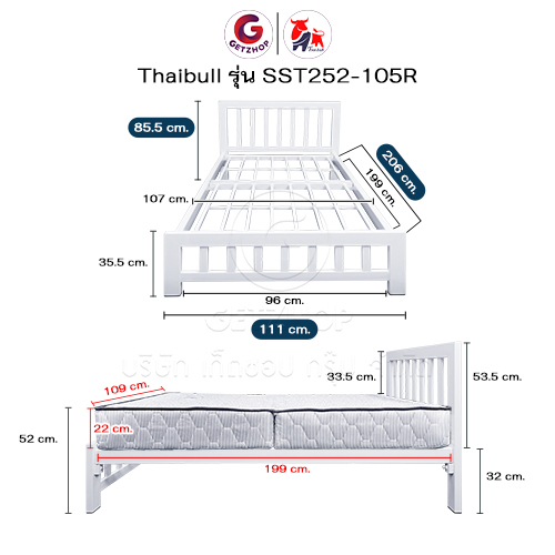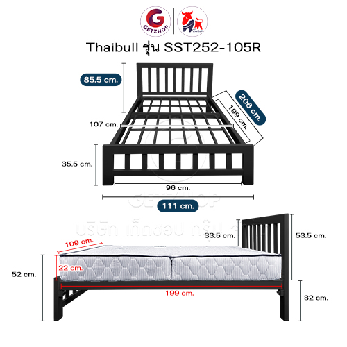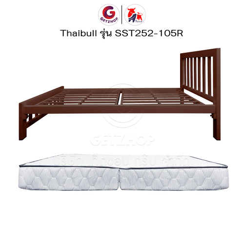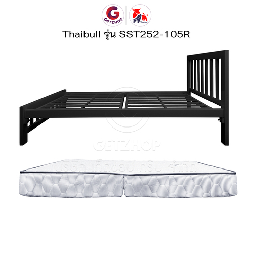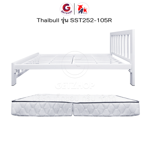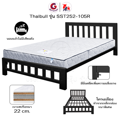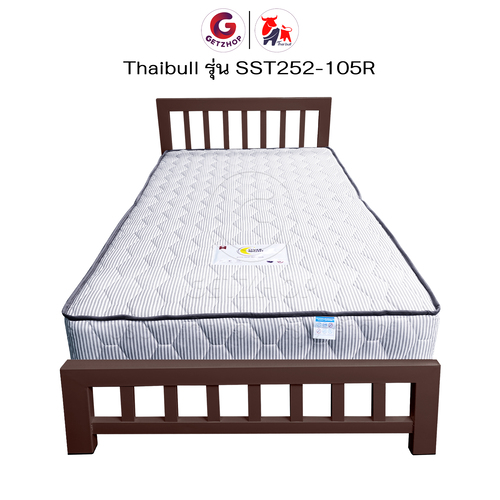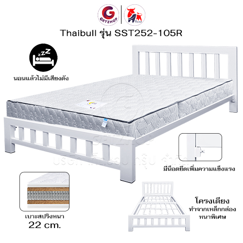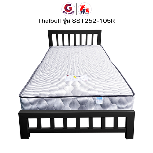 Thaibull เตียงนอน 3.5 ฟุต พร้อมเบาะสปริง หนา 8.5 นิ้ว (ระแนง) เตียงเหล็ก ขาเหลี่ยม 3 นิ้ว รุ่น SST252-105R (ผลิตในไทย)