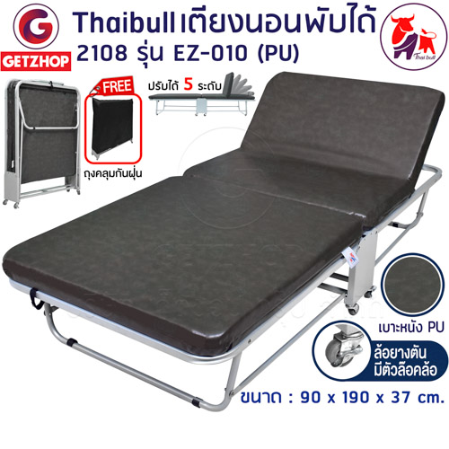 Thaibull เตียงเสริมพับได้ เตียงนอน 3ฟุต พร้อมเบาะรองนอน เตียงพับปรับระดับได้ เตียงหุ้มเบาะหนัง Foldable Portable Bed EZ-010 รุ่น 2108 ฟรี ถุงคลุมกันฝุ่น
