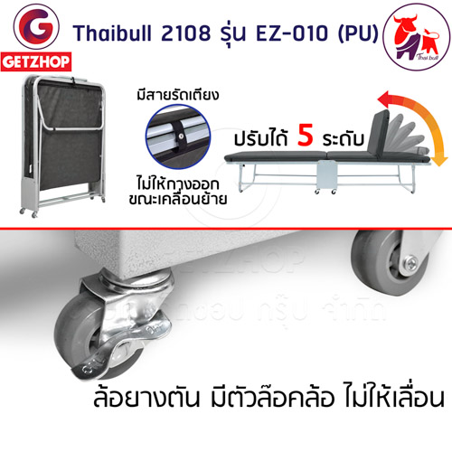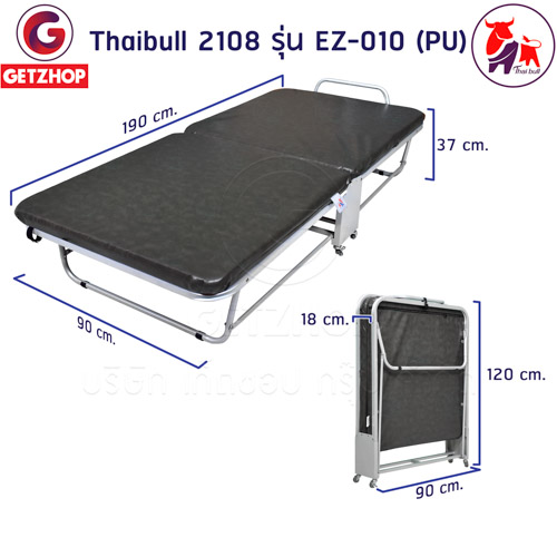 Thaibull เตียงเสริมพับได้ เตียงนอน พร้อมเบาะรองนอน เตียงพับปรับระดับได้ เตียงหุ้มเบาะหนัง Foldable Portable Bed EZ-010 รุ่น 2108 (PU) แถมฟรี ถุงคลุมกันฝุ่น